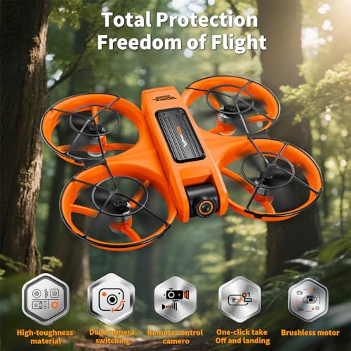 - 🛡️ Smart & Safe Flight Operation Fly with confidence thanks to 360° full protection guards, an optical flow positioning system, and a 6-axis gyroscope for ultra-stable control. These features enable precise hovering, smooth flight, and enhanced indoor/outdoor obstacle avoidance—perfect for beginners.