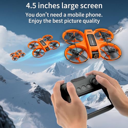 - 🎮 All-in-One Smart Remote with Large Screen The remote features a built-in 4.5″ HD display that shows a live video feed without requiring a phone. It also supports smart functions including Follow Me, waypoint flight, one-key surround, and 3D flips—making professional shots easier than ever.
