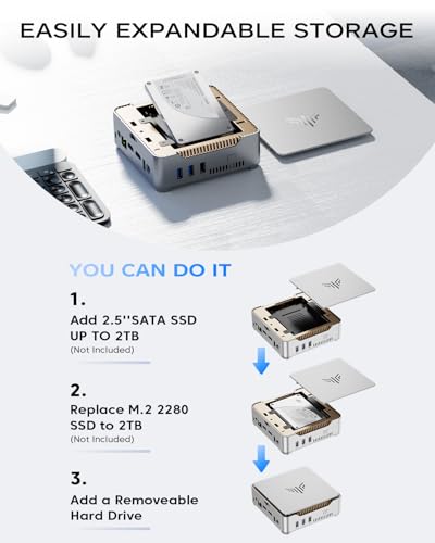 9 reviews for KAMRUI GK3Plus Mini PC, 16GB RAM 512GB M.2 SSD Mini Computers,12th Alder Lake N95 (up to 3.4GHz) Micro PC, 2.5”SSD, Gigabit Ethernet,4K UHD,Three…