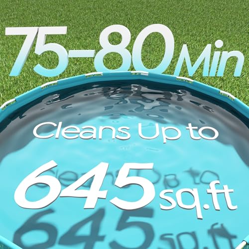 - High-Performance Battery: Go cordless and clean nonstop for 75–80 minutes—perfect for above-ground pools and flat in-ground pools up to 645 sq. ft. And with a fast 2.5-hour charge, your pool vac is always ready to go, so pool maintenance stays totally hassle-free.